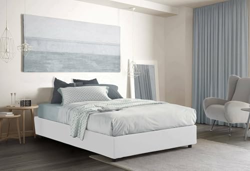 Talamo Italia - Lit double Azue, Lit coffre en tissu, Ouverture frontale, adapté pour matelas 140x190 cm, 100% Made in Italy, Blanc