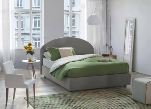 Talamo Italia - Lit double Isotta, Lit coffre avec revêtement en tissu, 100% Made in Italy, Ouverture frontale, adapté pour matelas 160x200 cm, Gris
