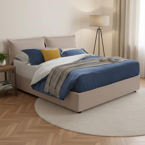 Talamo Italia - Lit double Jasmine, Lit coffre avec revêtement en simili cuir, 100% Made in Italy, Ouverture frontale, avec matelas 160x200 cm inclus, Taupe