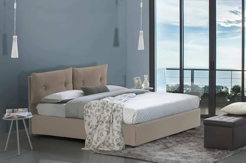 Talamo Italia - Lit double Brunetta, Lit coffre avec revêtement en tissu, 100% Made in Italy, Ouverture frontale, adapté pour matelas 160x190 cm, Taupe