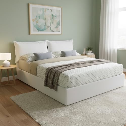 Talamo Italia - Lit double Nora, Lit coffre avec revêtement en simili cuir, 100% Made in Italy, Ouverture frontale, avec matelas 160x190 cm inclus, Blanc