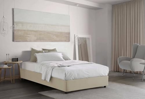 Talamo Italia - Lit double Camilla, lit coffre avec revêtement en tissu, 100% Made in Italy, ouverture latérale, adapté pour matelas 120x190 cm, Beige