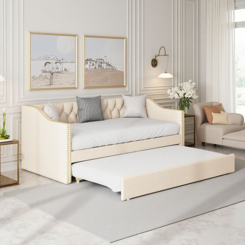 Lit Double 140x190 LED Rembourré Lin Gris Tête Escamotable Hydraulique avec Rangements(sans Matelas)