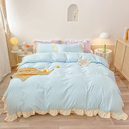Parure de Lit Rose 240x220Cm,Housse de Couette À Volants en Dentelle Douce Housse de Couette Style Princesse Française Housse de Couette Double King Super King Size pour Fille Adulte,Bleu,King(240x