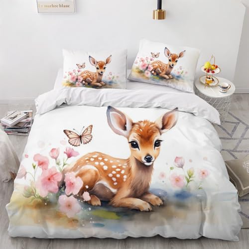 SK-YBB Parure De Lit 3 Pièces 200x200 Garçon Fille Housse De Couette 200x200 Double Cerf Lit 2 Personnes Microfibre pour Adultes Et Enfants