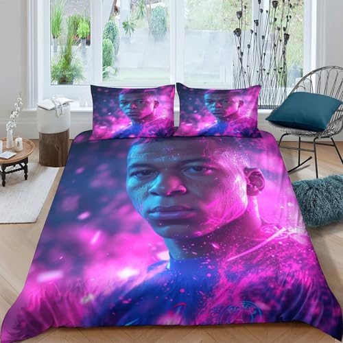 SHUNXIFQ Kylian Mbappe 3D Housse De Couette Parure De Lit,Microfibre Ensemble De Literie avec Housses De Couettes Taies D'oreillers pour Fille Garçon Couette Sets Double(200x200cm)
