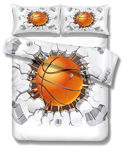 Stillshine . Housse de Couette 200x200 Basketball Sportif Style 3D Basketball Impression Élégant Parure de lit 2 Personas Housse de Couette et Taie d'oreiller Literie Enfant Double Garçon Fille