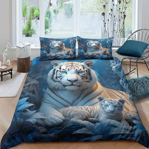 Tigre blanc Luxury 3 Pièces Parure De Lit Avec Thème animaux sauvages Housse De Couette-Doux-Respirant-en Microfibre-avec Taies D'oreiller-pour Fille Garçons Et Enfant Adultes Double(200x200cm)