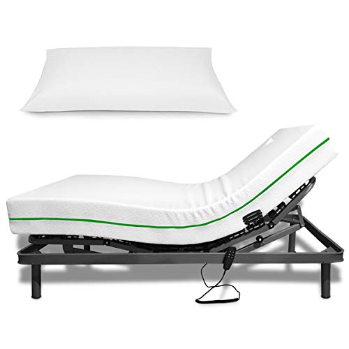 Geriafy Pack lit articulé électrique 80 x 190 cm | Matelas orthopédique viscoélastique 20 cm | Télécommande par câble