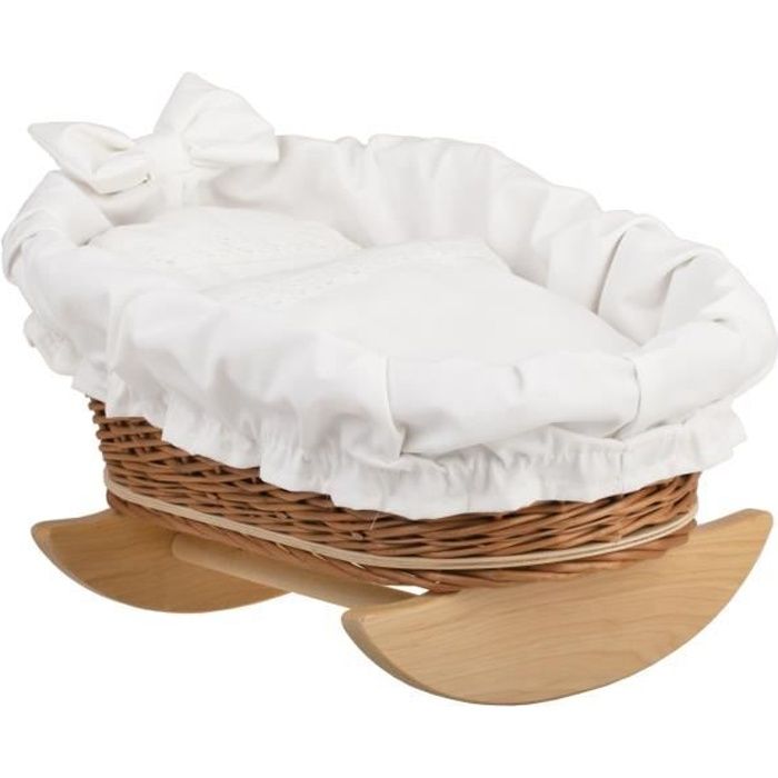 Lit pour poupée en osier naturel à bascule en bois - Blanc - Pour bébé à partir de 3 ans
