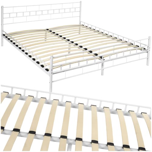 TecTake® Cadre de lit avec sommier en Bois Lit 140x200 cm Cadre en Acier laqué époxy Lit Double 2 Personnes Adulte, ado ou Enfant Chambre Adulte Moderne Meuble Chambre pour Matelas 140x200