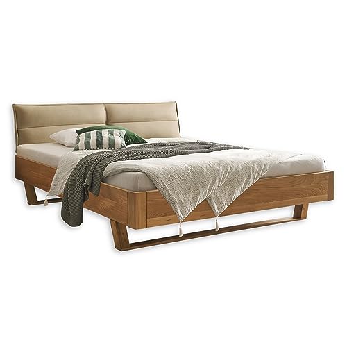 TJARK Lit Moderne en Bois Massif 180 x 200 cm, chêne - Lit à Poutre Confortable et de qualité supérieure avec tête de lit rembourrée - 186 x 89 x 219 cm (l x H x P)