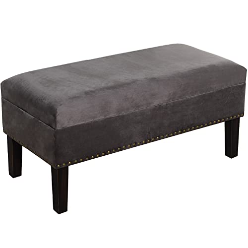 DRW Banquette Pied de lit en Bois, métal et Tissu Gris 120 x 50 x 45 cm