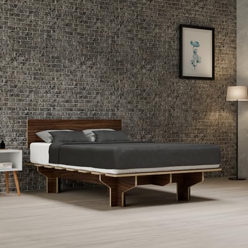 blumfeldt NordicAura Cadre de Lit - Cadre de Lit en Bois FSC avec Assemblage sans Outil, Tête de Lit Haute avec Rangement, Finition Noyer, Convient aux Matelas 140x200 cm