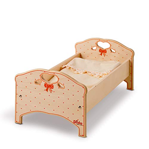 Dida - lit en Bois pour poupées avec Matelas + lit Feuille - Décoration: Rubans