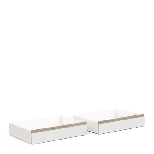 Demeyere Tiroir De Lit En Bois Moderne Et Fonctionnel – Lot de 2 Tiroirs – Coloris Blanc Mat Et Finitions Chêne Kronberg – Chambre Pour Adulte CLYDE – 71,1 x 99,1 x 20 cm