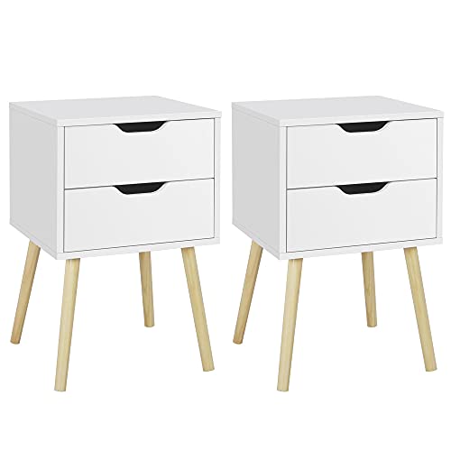 Yaheetech Table de Chevet Lot de 2 Blanche, Table de Nuit pour Adulte, Chevet du Lit en Bois, Style Scandinave, 2 Tiroirs, Pied en Bois Massif Blanc