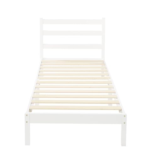 Amazon Basics Cadre de lit plateforme en bois de pin massif avec tête de lit côtelée, moderne, montage facile, pour enfants, 1 personne 90 x 190 x 88 cm, Blanc