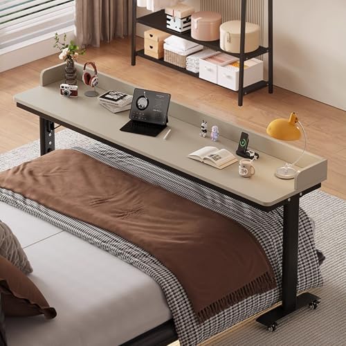 Bureau à roulettes sur Le lit avec roulettes, Table de lit réglable en Hauteur, Table de Lecture Mobile multifonctionnelle pour Ordinateur Portable(White,100cm/39.4in)