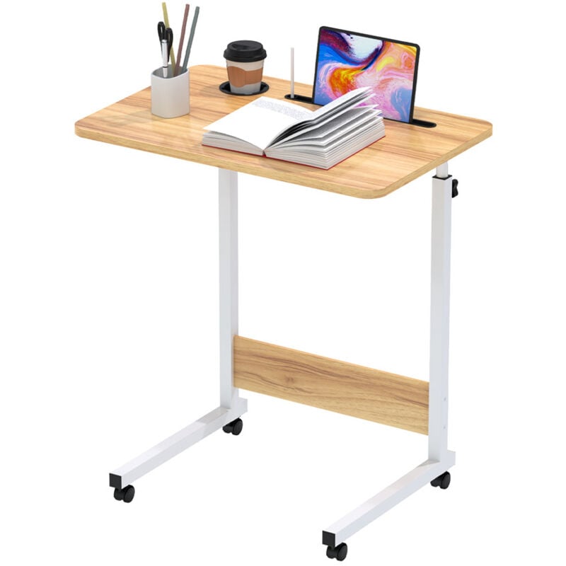 Table Ordinateur Mobile Réglable en Hauteur, Bureau Debout Portable avec roulettes 80x40cm, Petit Table D'ordinateur Mobile, Table de Lit pour