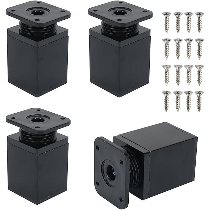 4PCS Pied de Meuble Reglable 5.5CM-8.5CM Pied de Lit Pied de Bureau Pied de Table Metal Pieds de Meuble Carré en Hauteur avec 16pcs Vis pour Armoires