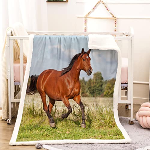 RLYXGS Plaid Couverture Polaire Cheval Brun 3D Animal Douce Chaude Microfibre ete Hiver Couverture en Flanelle 130x150 pour Jeté de Canapé, Dessus de lit pour Enfant Fille Garcon