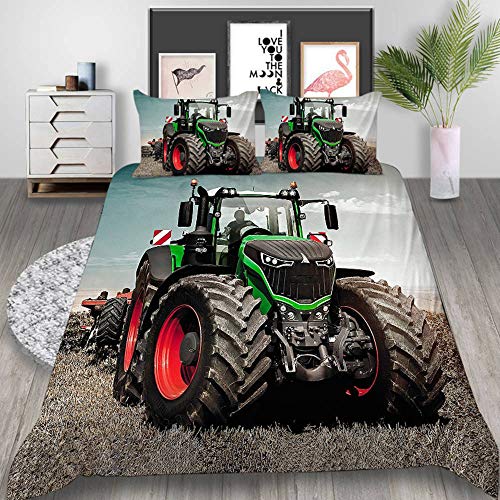 Aaooseso® Parures De Lit 2 Personnes Enfant Fille Garçon Housse De Couette 3D Tracteur Vert 240 X 220 Cm Parure De Couette Doux Cadeau pour Anniversaire (220 X 240 Cm)