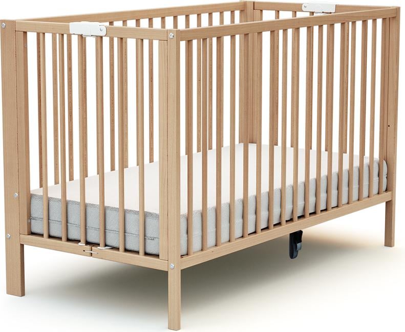 WEBABY - Lit de bébé pliable en bois naturel 60x120 cm avec matelas FLEX |Lit d'enfant pliable |Réglable en hauteur sur 3 niveaux|Compact |Transportable |Pliable |Economie de place