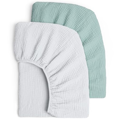 Lulumoon Lot de 2 draps Housses en Mousseline de Coton pour Enfant, alese 60x120 cm lit bébé Pliable, Drap Housse 70x140 cm Respirant pour lit de Berceau, lit de couffin-Gris Vert