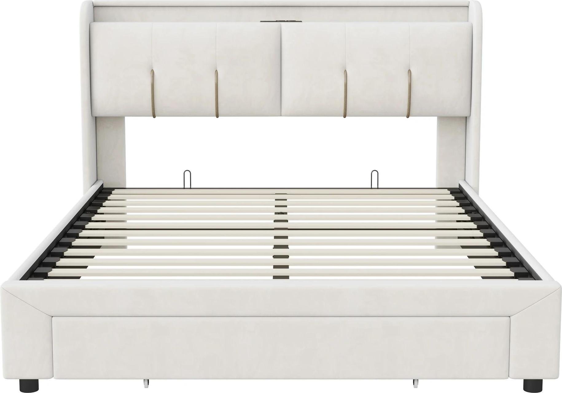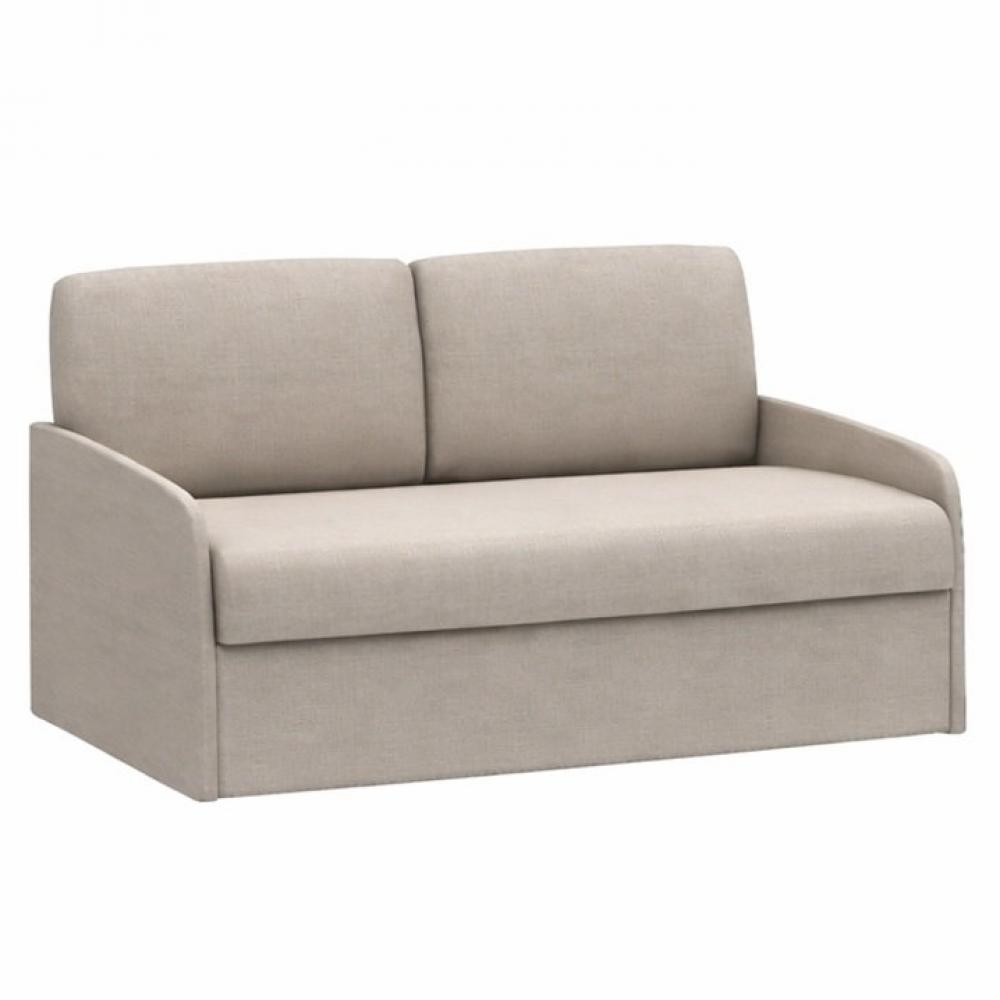 Lit escamotable 160x200 avec canapé et bibliothèque moba-coffrage blanc-façade frêne 3d-canapé beige