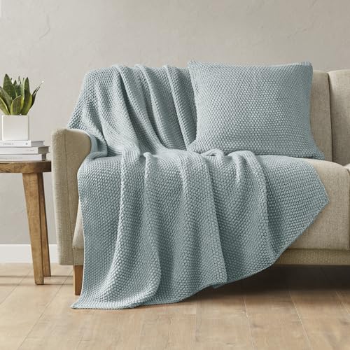 Madison Park Couverture Douce certifiée 100% Coton égyptien Respirante, Confortable et Respirante, Design Classique en Tricot gaufré de qualité supérieure, Housse légère de Luxe pour lit, canapé et