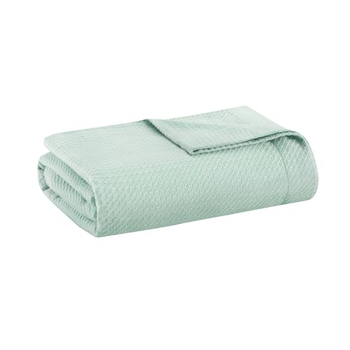 Madison Park Couverture Douce 100% Coton égyptien, Respirante et Confortable, Design Classique, Housse légère pour Toutes Les Saisons, pour lit, canapé et canapé, Bleu Sarcelle, lit jumeau (167,6 x