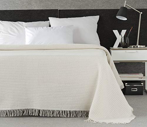 Estoralis | ESPIGA | Plaid Polyvalent de Conception Moderne | Couette pour lit et canapé | Écru | Housse de Couette/canapé (230 x 260 cm. (Largeur par Hauteur) avec des Franges