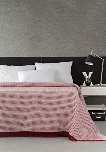 Estoralis | ESPIGA | Plaid Polyvalent de Conception Moderne | Couette pour lit et canapé | Rouge | Housse de Couette/canapé (230 x 260 cm. (Largeur par Hauteur) avec des Franges