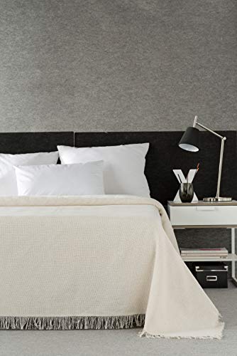 Estoralis | ESPIGA | Plaid Polyvalent de Conception Moderne | Couette pour lit et canapé | Écru | Housse de Couette/canapé (170 x 260 cm. (Largeur par Hauteur) avec des Franges