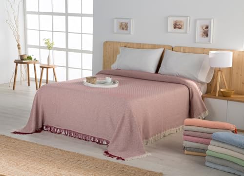 Estoralis | ESPIGA | Plaid Polyvalent de Conception Moderne | Couette pour lit et canapé | Rouge | Housse de Couette/canapé (170 x 260 cm. (Largeur par Hauteur) avec des Franges