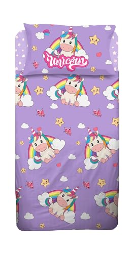 hermet Licorne, Drap de lit, lit Simple Fille, Drap Plat, taie d'oreiller, 100% Coton, draps Chambre