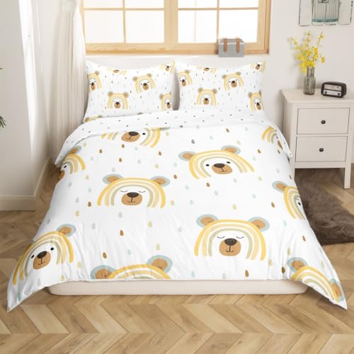 Homemissing Enfants Mignon Parure de Lit Belle Fille Ours imprimé Housse de Couette 140x200cm Arc - en - Ciel Motif, Doux Microfibre Teen Animaux Literie Set avec 1 taie d'oreiller 65x65cm