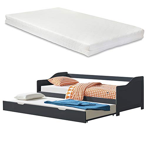 [en.casa] Canapé-lit Convertible avec 2 Matelas Lit Gigogne Divan Canapé d'appoint Bois Pin Contreplaqué Mousse à Froid Gris Foncé 205x190,5x66cm