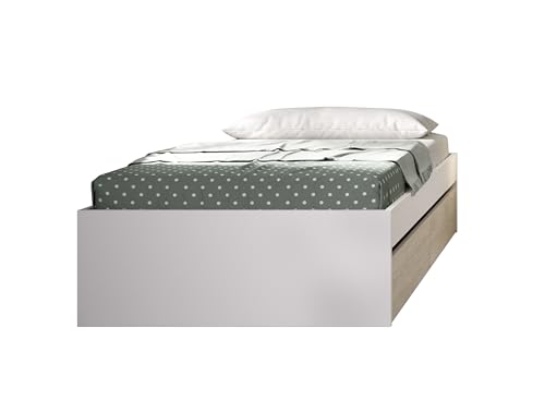 DEKIT GRUPO RIMOBEL Lit gigogne, mélamine, Blanc/Naturel, 40,3 x 99,8 x 194,8 cm