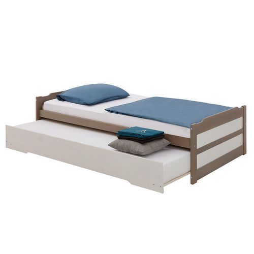 Lit gigogne LORENA en pin massif, 90 x 190 cm, lasuré taupe et blanc blanc / marron 99 x 195 x 48 cm