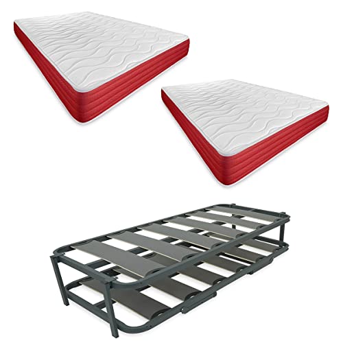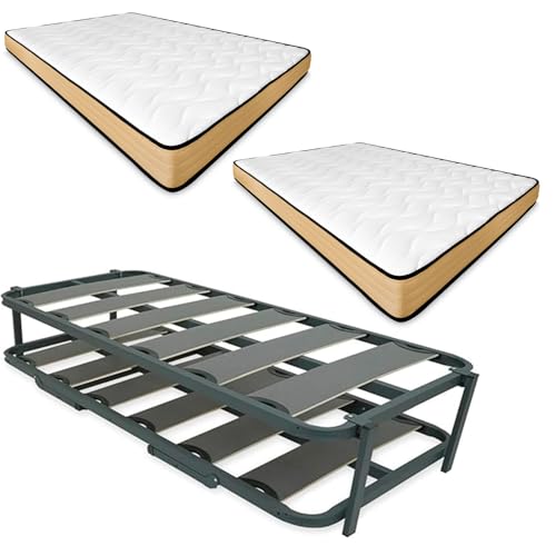 DUÉRMETE ONLINE Complet avec 2 Matelas Viscotec (Face Hiver/été) + lit gigogne renforcé, Acier allié, Gris, 90 x 190 cm