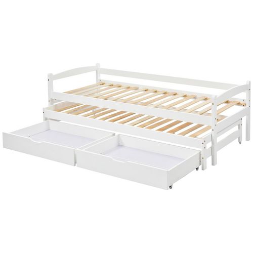 Vente Unique Lit gigogne banquette 90 x 190 ou 180 x 190 cm Avec sommier peigne et tiroirs Pin et MDF Blanc DINIVA