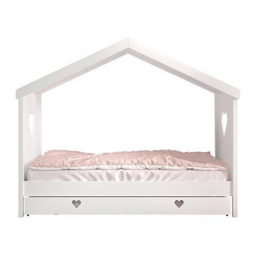 Lit Gigogne Cabane Enfant Ouvert Amori 90x200cm Blanc