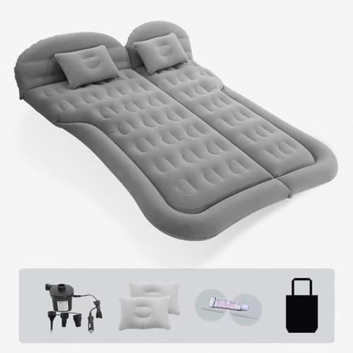 Ausla Matelas gonflable de voiture pour siège arrière, lit gonflable SUV pliable avec coussins et pompe à air électrique, pour voyages, camping, 174 x 126 cm (Gris)