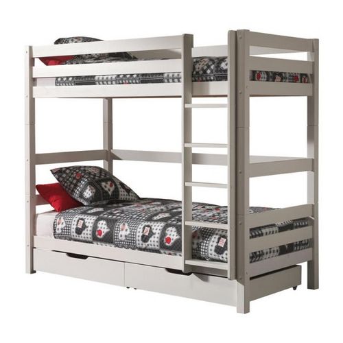 Lit Enfant Superposé Haut & 2 Tiroirs Pino 90x200cm Blanc