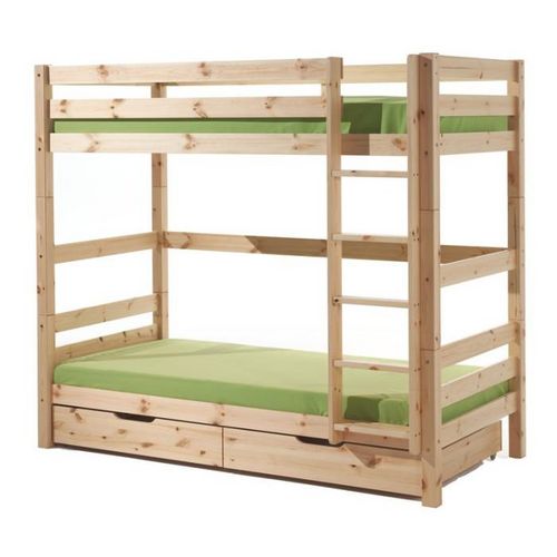 Lit Superposé Haut & 2 Tiroirs de Lit Enfant Pino 90x200cm Naturel