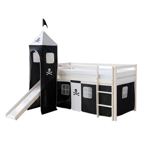 Lit mi- haut Blanc 90x200 en hauteur avec echelle et rideau Pirate