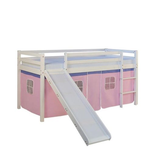 Lit rose mi-haut 90x200 cm avec tour toboggan matelas