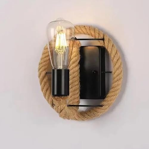 Générique Lampes murales modernes, Applique murale personnalisée style V-intage en fer avec tête de lit, industriel créatif, for café, restaurant, corde chanvre(B)